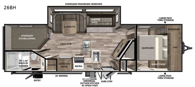 With a well-thought-out floor plan, the Vibe 26BH is perfect for families or groups of friends. Key highlights include: