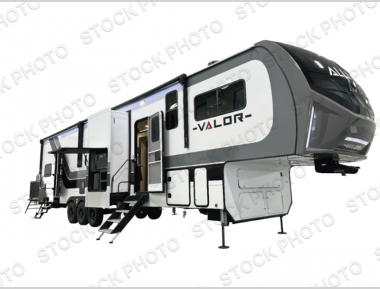 You can bring your toys with you wherever you go with any one of these Alliance RV Valor toy hauler fifth wheels! They are adventure-ready with a quality build from the walk on roof with seamless PVC roof covering to the commercial grade vinyl flooring and MorRyde CRE3000 suspension system. The Performance Running Gear package comes with a 101" wide-body benchmark chassis platform, 7,000 lb. Dexter axles, and a space enhancing drop frame storage compartment to pack in all your riding gear. You can even go off-gridding thanks to the Off the Grid Pack that has two 400-watt solar panels, generator prep, a 60-amp charge controller, and a 100-amp hour lithium iron phosphate battery. Some of the interior comforts you will enjoy are the hardwood cabinet doors and drawers, solid surface kitchen countertops, and commercial grade vinyl flooring with no carpet to make clean up a breeze. The Valor toy haulers are also the Masters of 12 Volt with USB charging station throughout, a 12V refrigerator, and more 12-volt features to make camping hassle-free!