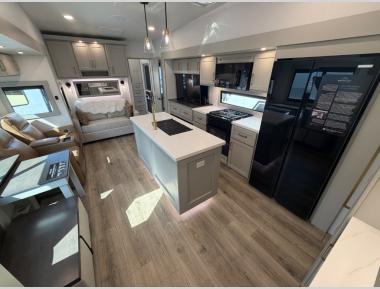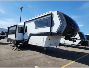 Sleeps 4 Slides 3 Length 39 ft 11 in Ext Width 8 ft Ext Height 13 ft 4 in Exterior Color Silver, White or Gold Full Body Paint Hitch Weight 2607 lbs GVWR 17495 lbs Dry Weight 13989 lbs Fresh Water Capacity 75 gals Grey Water Capacity 130 gals Black Water Capacity 44 gals Tire Size 215/75 R17.5 Furnace BTU 35000 btu Available Beds King Refrigerator Type 12V Refrigerator Size 16 cu ft Cooktop Burners 3 Shower Size 30" x 42" Number of Awnings 2 Axle Weight 8000 lbs LP Tank Capacity 30 lbs. Water Heater Type Tankless On Demand AC BTU 31500 btu TV Info LR Televator, BR 32" Smart TV Awning Info 11' & 15' Electric w/Neon COB/Dotless LED Lighting Axle Count 2 Washer/Dryer Available Yes Number of LP Tanks 2 Shower Type Standard Solar Wattage 370 watts Similar Fifth Wheel Floorplans