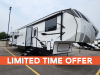 Sleeps 4 Slides 3 Length 34 ft 8 in Ext Width 8 ft Ext Height 12 ft 10 in Interior Color Linen, Carbon Hitch Weight 1935 lbs GVWR 12000 lbs Dry Weight 9574 lbs Cargo Capacity 2426 lbs Fresh Water Capacity 48 gals Grey Water Capacity 90 gals Black Water Capacity 45 gals Tire Size 15" Available Beds Queen Refrigerator Type Side by Side Stainless Glass 12V Refrigerator Size 16 cu ft Cooktop Burners 3 Number of Awnings 1 Water Heater Type On Demand AC BTU 27000 btu TV Info LR 50" 4K Smart LED TV Awning Info 15' Electric with LED Light Strip Axle Count 2 Washer/Dryer Available Yes Shower Type Standard Electrical Service 50 amp Similar Floorplans