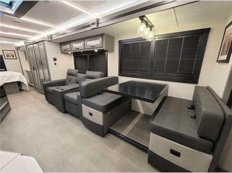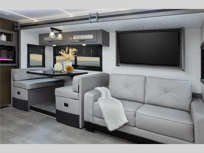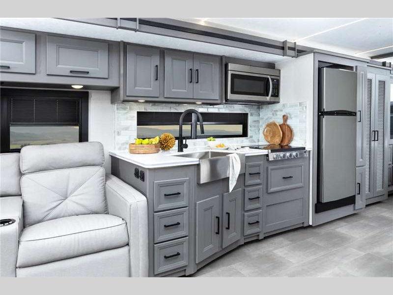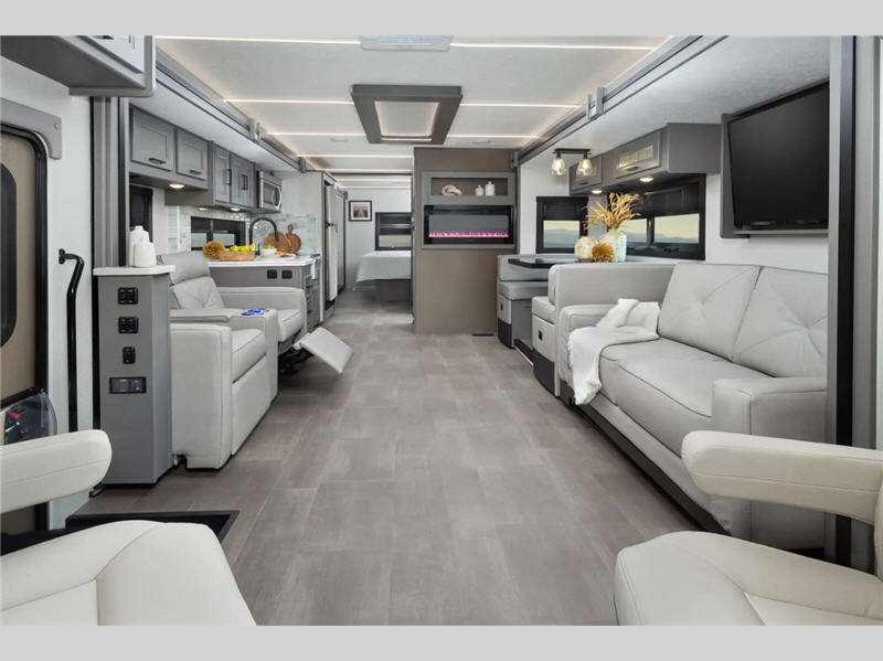 Their interiors are designed for maximum comfort with everything you could need to recharge. Some of these features include stainless steel appliances, a king bed, and an electric fireplace on some models. Enjoy a comfortable ride to each destination with the reclining/swivel pilot seats, and the 10" touchscreen radio with Bluetooth Apple CarPlay and Android Auto link allow you to play your favorite tunes too!