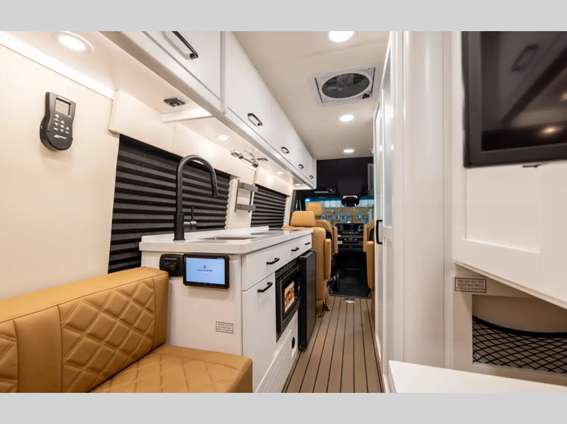 Sleeps 2 Length 24 ft 3 in Ext Width 6 ft 11 in Ext Height 9 ft 6 in Int Height 6 ft 2 in Interior Color Cashmere, Fog, Onyx, Ginseng (Copper) Exterior Color Arctic White, Brilliant Silver Hitch Weight 5000 lbs GVWR 11030 lbs Fresh Water Capacity 27 gals Grey Water Capacity 22 gals Black Water Capacity 12 gals Generator Onan QG 2500 LP Quiet Fuel Type Diesel Engine 2.0L Turbo I4 Diesel Chassis Mercedes 3500 Ext Fuel Capacity 24 gals Wheelbase 170 in Cooktop Burners 1 Number of Awnings 1 LP Tank Capacity 51 lbs. AC BTU 13500 btu TV Info Coach 24" LED Smart TV Awning Info 13' 1" Gross Combined Weight 15250 lbs Shower Type Wet/Bath Shower Electrical Service 30 amp