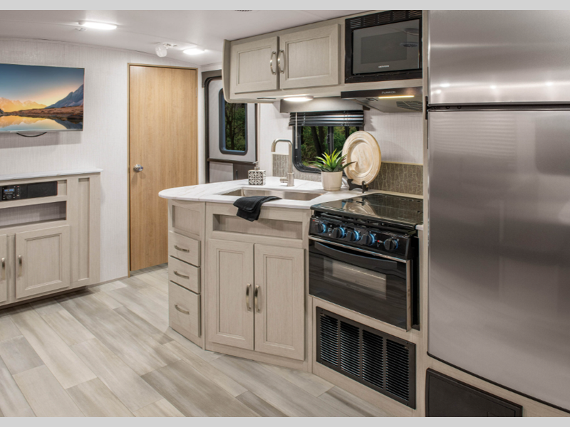 Each model features durable construction materials, allowing you to enjoy your RV for years to come. There are comfortable sleeping and seating spaces, full bath and kitchen amenities, and ample storage solutions for camp gear, food, games and more!
