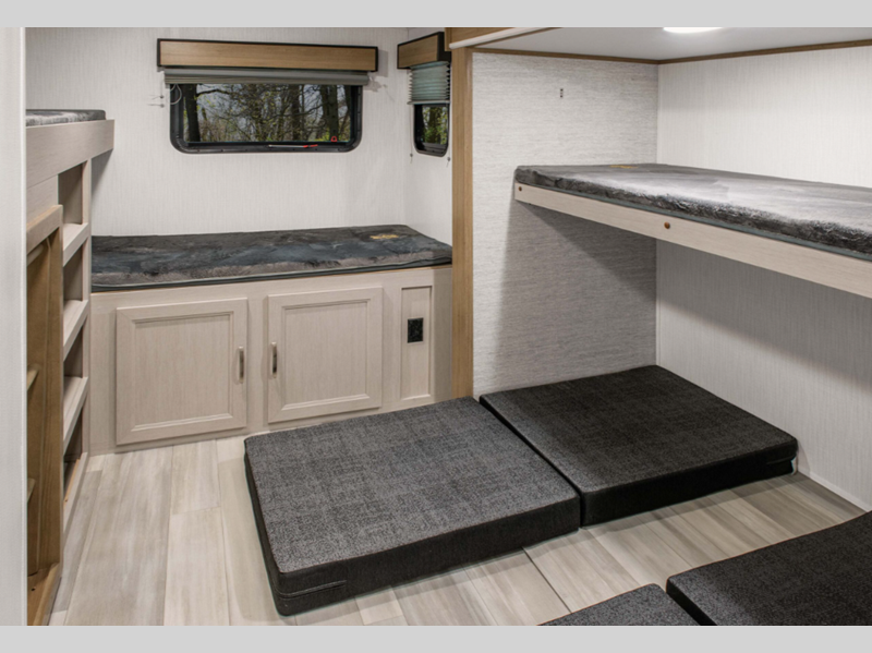 Sleeps 9 Slides 1 Length 31 ft 11 in Ext Width 8 ft 1 in Ext Height 11 ft 6 in Int Height 6 ft 8 in Interior Color Integrity Hitch Weight 1022 lbs GVWR 9822 lbs Dry Weight 6612 lbs Fresh Water Capacity 46 gals Grey Water Capacity 60 gals Black Water Capacity 30 gals Tire Size 15" Furnace BTU 30000 btu Number Of Bunks 2 Available Beds Olympic Queen Refrigerator Type Double Door Refrigerator Size 10.7 cu ft Cooktop Burners 3 Number of Awnings 1 Axle Weight 4400 lbs LP Tank Capacity 20 lbs Water Heater Type Tankless On Demand AC BTU 13500 btu Awning Info 20' Power with LED Lights Axle Count 2 Number of LP Tanks 2 Shower Type Standard Similar Floorplans