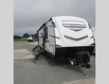 Experience a peace of mind with each one of these Cruiser Embrace travel trailers! Durable construction consists of a painted front cap with LED lights, a one-piece vinyl TPO membrane roof, plus a heated and enclosed underbelly to help extend your camping season. There are also 15" rims and tires on heavy-duty axles, 5/8" tongue and groove plywood flooring, a power awning with LED lights, plus more top selling features. Inside, you'll enjoy seamless countertops, concealed cabinet door hinges, an LED lighting package, and many more comforts.