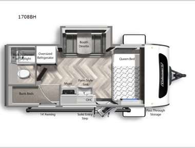Stock #113967RRaleigh NCThis compact bunkhouse trailer offers impressive capability, modern features, and comfortable living space in an easy-to-tow package.Stock #113967RRaleigh NCThis compact bunkhouse trailer offers impressive capability, modern features, and comfortable living space in an easy-to-tow package.