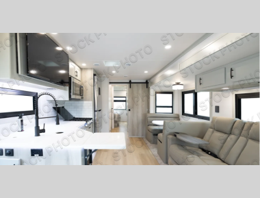 Sleeps 5 Slides 2 Length 36 ft 8 in Ext Width 8 ft 5 in Ext Height 12 ft 9 in Interior Color Driftwood II, Mindful Gray, Milano II, Saddle, Desert (Dealer Stock Only) Exterior Color Full Body Paint; Admiral Blue, Khaki, Quicksilver, Stone Ridge Hitch Weight 15000 lbs GVWR 33000 lbs Fresh Water Capacity 94 gals Grey Water Capacity 52 gals Black Water Capacity 52 gals Tire Size 275/80R 22.5 Furnace BTU 40000 btu Generator 8kW Onan Diesel Fuel Type Diesel Engine Cummins B6.7 Turbo Diesel Chassis Freightliner M2 106B Plus Horsepower 360 hp Fuel Capacity 100 gals Wheelbase 268 in Available Beds King Torque 800 ft-lb Refrigerator Type 12V Three Door Compressor Driven Refrigerator Size 15 cu ft Convection Cooking Yes Cooktop Burners 3 Number of Awnings 1 Axle Weight Front 12000 lbs Axle Weight Rear 21000 lbs LP Tank Capacity 20.3 gals Water Heater Type On Demand LP AC BTU 30000 btu TV Info LR 39" LED Smart TV, BR 32" LED Smart TV Awning Info 16' Armless w/LED Lighting and Motion Activated Retraction Washer/Dryer Available Yes Gross Combined Weight 46000 lbs Shower Type Standard Electrical Service 50 amp Solar Wattage 200 watts Similar Motor Home Super C - Diesel Floorplans