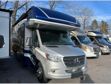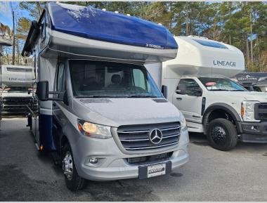 Sleeps 3 Slides 1 Length 24 ft 7 in Ext Width 7 ft 10 in Ext Height 11 ft 5 in Int Height 6 ft 9 in Interior Color Saddle, Milano II Exterior Color Full Body Paint; Magnetic, Varesine Blue, Titanium Hitch Weight 5000 lbs GVWR 11030 lbs Fresh Water Capacity 35 gals Grey Water Capacity 32 gals Black Water Capacity 32 gals Tire Size 16" Furnace BTU 20000 btu Generator Flex Power™ 4000i LP Fuel Type Diesel Engine 2.0L I-4 Chassis Mercedes Benz Sprinter Horsepower 208 hp Wheelbase 170 in Available Beds Queen Torque 332 ft-lb Refrigerator Type 12V Two Door Compressor Driven Refrigerator Size 8 cu ft Convection Cooking Yes Cooktop Burners 3 Number of Awnings 1 Axle Weight Front 4410 lbs Axle Weight Rear 7720 lbs LP Tank Capacity 20.3 gals Water Heater Type Truma Aqua Go Comfort On Demand AC BTU 15000 btu TV Info LR 32" LED Smart TV, BR 32" LED Smart TV Awning Info 16' Armless w/LED Lighting and Motion Activated Retraction Gross Combined Weight 15250 lbs Shower Type Standard Electrical Service 30 amp Similar Motor Home Class C - Diesel Floorplans
