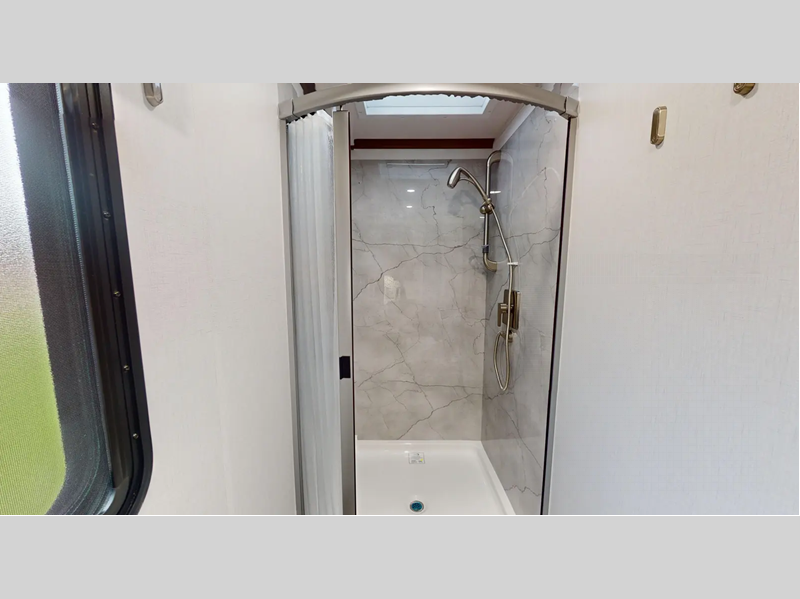 - Front Cab-Over Bunk Area with Mattress (50” x 80”) and Privacy Curtain