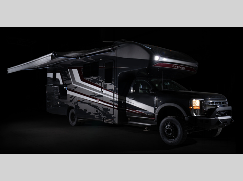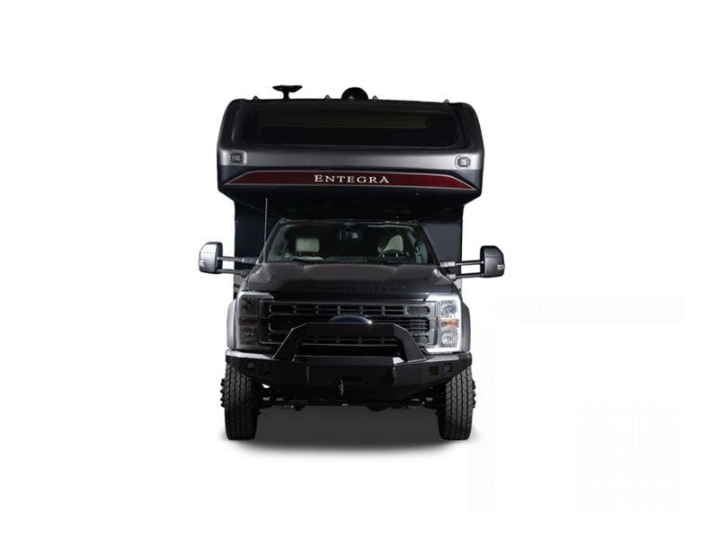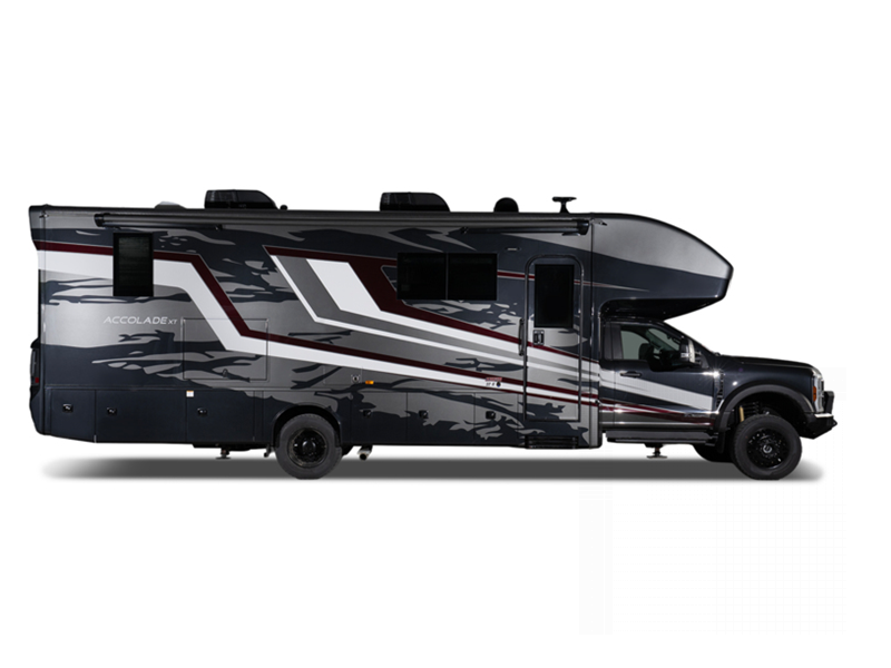 The Accolade XT from Entegra Coach is a Super C diesel motorhome like no other. With a tough exterior appearance and a comfortable interior, you will enjoy hours of fun in this motorhome. The Ford F600 4X4 chassis or Ford F550 4x4 chassis (depending on which model you choose) is ready to go anywhere, and the all-terrain tires with HiSpec matte black aluminum rims enhance the appearance.