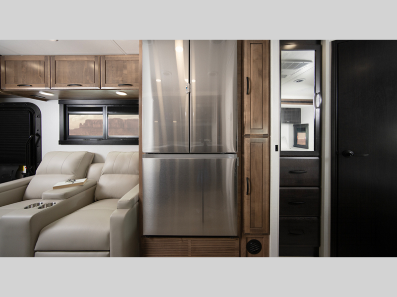 Sleeps 6 Slides 3 Length 37 ft 3 in Ext Width 8 ft 5 in Ext Height 12 ft 6 in Int Height 7 ft Interior Color Cold Spring, Warm River Exterior Color Full-Body Paint Options; Foghorn, Midnight Lighting, Mood Dust, Night View, Northern Sky Hitch Weight 12000 lbs GVWR 22000 lbs Fresh Water Capacity 60 gals Grey Water Capacity 30 gals Black Water Capacity 30 gals Tire Size 245/70R 19.5 Furnace BTU 30000 btu Generator 6,000W Diesel Fuel Type Diesel Engine 6.7L Power Stroke V8 Chassis Ford F600 4X4 Horsepower 330 hp Fuel Capacity 67 gals Wheelbase 258 in Number Of Bunks 1 Available Beds King Torque 950 ft-lb Refrigerator Type Residential Refrigerator Size 18 cu ft Convection Cooking Yes Cooktop Burners 2 Shower Size 30" x 36" Number of Awnings 1 Axle Weight Front 7500 lbs Axle Weight Rear 15500 lbs LP Tank Capacity 24.5 gal. Water Heater Type Tankless AC BTU 28500 btu TV Info LED HD Smart TV; LR 50" Lift TV, BR TV, Ext. TV Awning Info 17' Electric Legless with LED Lights Washer/Dryer Available Yes Gross Combined Weight 34000 lbs Shower Type Standard Electrical Service 50 amp Similar Floorplans