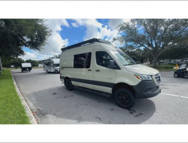Sleeps 2 Length 19 ft 6 in Ext Width 6 ft 10 in Int Height 6 ft 2 in Interior Color Serenity Exterior Color Standard Exterior; Silver, Sandstone, Selenite. Partial Paint; Everglade, Lunar Tide, Storm. Hitch Weight 5000 lbs GVWR 9050 lbs Fresh Water Capacity 21 gals Grey Water Capacity 21 gals Black Water Capacity 4.75 gals Tire Size 245/70R17 Furnace BTU 17000 btu Fuel Type Diesel Engine 2.0L 4 Cylinder Chassis Mercedes-Benz Sprinter 2500 AWD Horsepower 211 hp Fuel Capacity 24.5 gals Wheelbase 144 in Number Of Bunks 1 Torque 332 ft-lb Refrigerator Type DC Refrigerator Size 3 cu ft Cooktop Burners 1 Shower Size 26" x 33" Number of Awnings 1 Axle Weight Front 4410 lbs Axle Weight Rear 5360 lbs Water Heater Type Hydronic AC BTU 13500 btu Awning Info Carefree Armless Power with LED Light Strip and Wind Sensor Gross Combined Weight 13930 lbs Shower Type Wet/Bath Shower Electrical Service 30 amp
