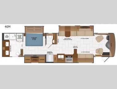 Sleeps 5 Slides 3 Length 40 ft 1 in Ext Width 8 ft 6 in Ext Height 12 ft 10 in Int Height 7 ft Interior Color Serenity, Anthology, Signature, Amaretto Exterior Color Carezza, Constellation, Hourglass, Montezuma, Plantation, Rendezvous Hitch Weight 10000 lbs GVWR 36600 lbs Fresh Water Capacity 105 gals Grey Water Capacity 75 gals Black Water Capacity 50 gals Tire Size 275/80R 22.5H Generator 8kw Onan Quiet Diesel Fuel Type Diesel Engine Cummins L9 Chassis Freightliner Custom XCM Horsepower 380 hp Fuel Capacity 100 gals Wheelbase 263 in Available Beds King Torque 1150 ft-lb Refrigerator Type Residential w/Ice and Water In Door Convection Cooking Yes Cooktop Burners 2 Shower Size 50" x 28" Number of Awnings 1 Axle Weight Front 12600 lbs Axle Weight Rear 24000 lbs Water Heater Type Aqua Hot 400D AC BTU 45000 btu Basement Storage 142 cu. ft. TV Info LR Pop-Up LED TV, Cab TV, BR LED TV, Ext. LED TV Awning Info 18' Power w/LED Lighting & Motion Sensor Retract Washer/Dryer Available Yes Gross Combined Weight 46600 lbs Shower Type Shower w/Seat Electrical Service 50 amp Similar Motor Home Class A - Diesel Floorplans
