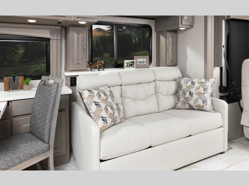 The Discovery Class A diesel motorhomes have an unbeatable combination of fantastic drivability and modern amenities to make you feel at home! The 360HP engine will power your trips both near and far, and the 10,000 towing capacity means you can bring along the family car!