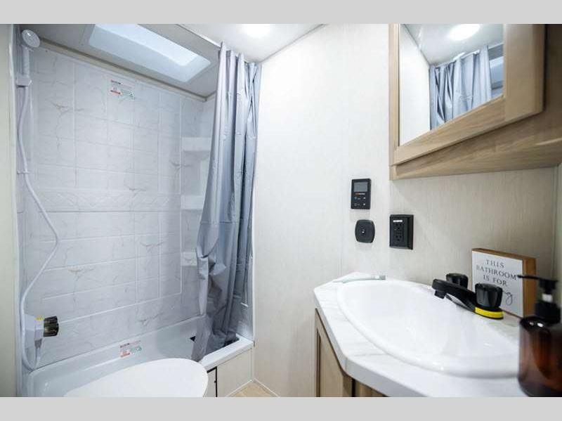 Sleeps 4 Length 25 ft 1 in Ext Width 8 ft Ext Height 10 ft 8 in Hitch Weight 579 lbs GVWR 7579 lbs Dry Weight 4665 lbs Cargo Capacity 2914 lbs Fresh Water Capacity 52 gals Grey Water Capacity 38 gals Black Water Capacity 28 gals Furnace BTU 20000 btu Available Beds RV King Refrigerator Type 12V Cooktop Burners 3 Number of Awnings 1 Water Heater Type Tankless AC BTU 15000 btu Awning Info 15' Full Length Power w/LED Light Strip Axle Count 2 Shower Type Tub/Shower Combo Solar Wattage 200 watts Similar Floorplans