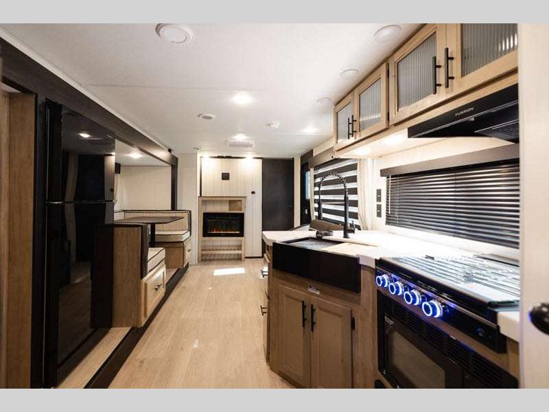 Sleeps 5 Slides 1 Length 28 ft 10 in Ext Width 8 ft Ext Height 10 ft 8 in Int Height 0 ft Hitch Weight 801 lbs GVWR 7801 lbs Dry Weight 5750 lbs Cargo Capacity 2051 lbs Fresh Water Capacity 52 gals Grey Water Capacity 38 gals Black Water Capacity 38 gals Furnace BTU 20000 btu Available Beds RV King Refrigerator Type 12V Cooktop Burners 3 Number of Awnings 1 Water Heater Type Tankless AC BTU 15000 btu Cargo Deck Size 0 ft Awning Info 15' Full Length Power w/LED Light Strip Axle Count 2 Shower Type Neo-Angled Solar Wattage 200 watts Similar Floorplans