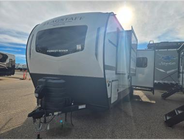 With any Flagstaff Micro Lite travel trailer by Forest River you will enjoy lightweight towing, durable construction, and added interior comforts to make each trip memorable! Each model features RoadTech tire pressure monitoring, Dexter Torflex axles, and nitrogen-filled Goodyear endurance tires for smooth towing from home to campground. The 6-sided aluminum framed construction provides a strong foundation so you can enjoy your RV for years to come, plus the radiant foil in the front cap, underbelly and slides help insulate your trailer. Additional exterior features include a 200W solar panel, back-up camera prep, frameless windows, and slam baggage doors. Each model includes the Great Expectations Package with roller shades, solid surface kitchen countertops, and hidden hinge cabinet doors. There is also an exterior hot/cold water port, outside speakers, a power tongue jack and stabilizer jacks, plus many more conveniences.