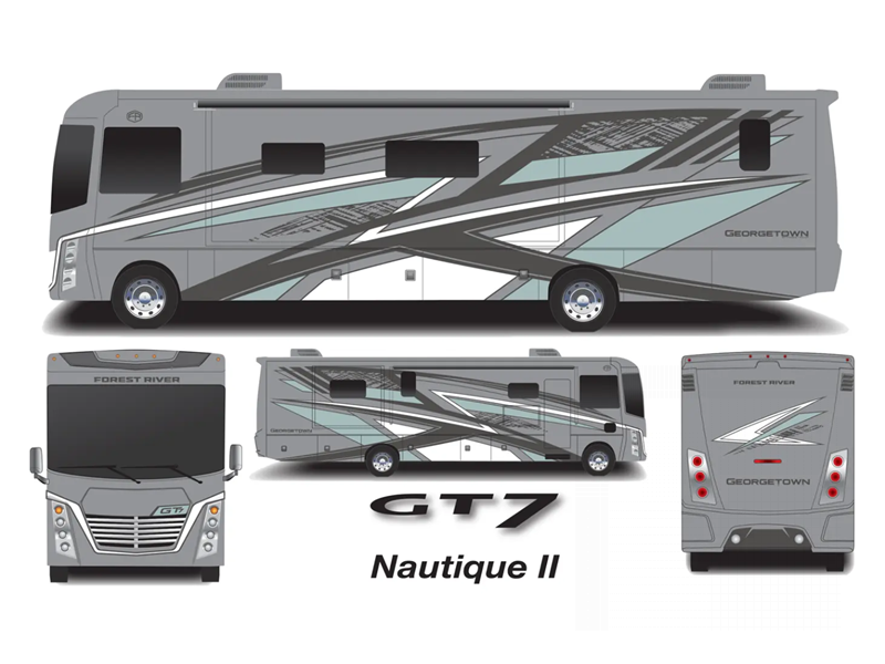 Experience the true richness of the Forest River Georgetown 7 Series Class A gas motorhomes while exploring new destinations! Luxury is not an option with the high-end hand crafted true wood cabinetry and the four eye-catching full body paint exteriors.