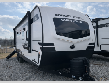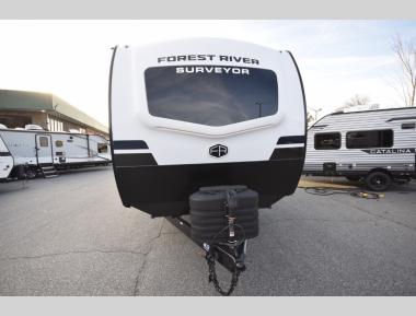 With any Grand Surveyor travel trailer by Forest River you will enjoy turn-key ready-to-go features and quality construction! Each model includes Azdel composite walls and a gel coated fiberglass front cap with an automotive style tinted windshield for a sleek look. There are friction hinge black glass entry door(s), an adjustable platform step with a night light, plus Goodyear tires and a power tongue jack for easy towing. The interior will have you feeling right at home with roller shades, residential faucets, sinks, and bathroom vanity, plus Surf(x) seamless countertops throughout. You can also plan for adventure with a 2" rear accessory and exterior spray port, and there are slam latch exterior baggage doors throughout to keep all your gear secure. Other stand-out features include a central vacuum system, a 200 watt solar panel with a 30 amp controller, a tankless water heater, carpet-free interiors, and the list goes on!