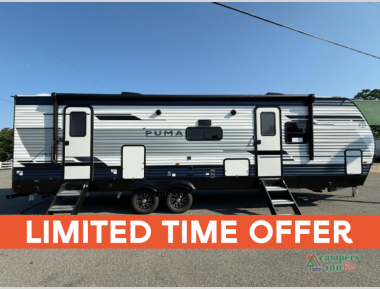 If you're looking for family-fun adventures, then you need one of these Forest River Puma travel trailers! They are built rugged, easy to tow, and jam packed with features. The Darco wrapped underbelly will help protect your unit, and the roof and side mount solar prep gives you the option to add off-grid power. Inside, the Congoleum linoleum will be easy to keep clean, and the night roller shades will provide privacy when it's time to turn in. You'll also enjoy an electric awning with an LED light strip plus an AM/FM/Bluetooth stereo and two outside speakers to keep the party going!