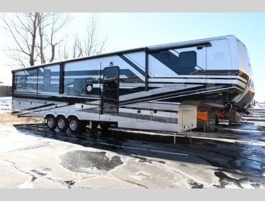 Sleeps 4 Slides 6 Length 44 ft Ext Width 8 ft 6 in Ext Height 13 ft 4 in Hitch Weight 3635 lbs GVWR 24000 lbs Dry Weight 18786 lbs Cargo Capacity 5214 lbs Fresh Water Capacity 79 gals Grey Water Capacity 120 gals Black Water Capacity 40 gals Tire Size 17.5" Furnace BTU 40000 btu Available Beds King Refrigerator Type French Door with Ice Maker Refrigerator Size 18 cu ft Convection Cooking Yes Cooktop Burners 4 Number of Awnings 2 Axle Weight 8000 lbs LP Tank Capacity 40 lbs Water Heater Type Truma Aqua Go Comfort On Demand AC BTU 30000 btu TV Info LR 65" Samsung LED Smart TV, BR 40" Smart LED TV Awning Info 16' Electric with LED Lights Axle Count 2 Washer/Dryer Available Yes Number of LP Tanks 2 Shower Type Standard Electrical Service 50 amp Solar Wattage 200 watts Similar Fifth Wheel Floorplans