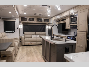 You're going to love the amount of natural light in this model with large windows in the back and the door side. The chef of the group will love the kitchen island, and there is tons of storage space for dishes, food, and knickknacks. The entertainment center with a Smart TV will allow you to watch movies at night, or you may just find yourselves outside under the two power awnings with LED lights. There is also an outside griddle prep here to cook pancakes in the morning. The king bed is sure to bring comfort, and you'll appreciate the large wardrobe to keep your clothes tidy. There is even washer and dryer prep if you choose to go full-time!