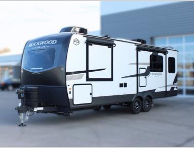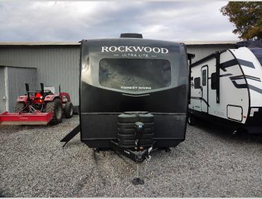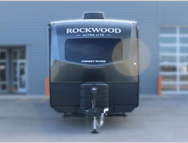 Each Rockwood Ultra Lite travel trailer by Forest River includes superior construction with a high gloss fiberglass cap, aluminum cage construction, and a power awning with LED lighting for a cozy and functional outdoor space. The torsion axle, power tongue jack will make towing smooth and hassle-free, along with the nitrogen filled, Goodyear Endurance tires and the tire pressure monitor system. Interior comforts include  kitchen sink with high rise faucet, hidden hinge cabinet doors, and roller shades to name a few. Choose a Rockwood Ultra Lite travel trailer today!