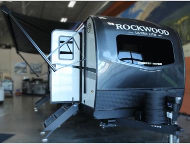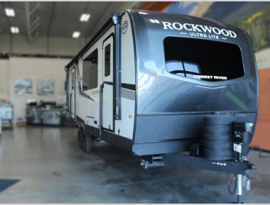 Each Rockwood Ultra Lite travel trailer by Forest River includes superior construction with a high gloss fiberglass cap, aluminum cage construction, and a power awning with LED lighting for a cozy and functional outdoor space. The torsion axle, power tongue jack will make towing smooth and hassle-free, along with the nitrogen filled, Goodyear Endurance tires and the tire pressure monitor system. Interior comforts include kitchen sink with high rise faucet, hidden hinge cabinet doors, and roller shades to name a few. Choose a Rockwood Ultra Lite travel trailer today!
