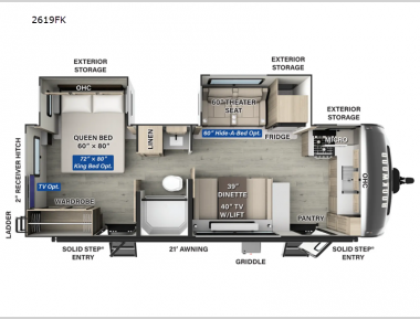 Stock #105182Naperville ILFront kitchen, dual slides, and luxury touches—this Rockwood Ultra Lite 2619FK redefines travel trailer living.Stock #105182Naperville ILFront kitchen, dual slides, and luxury touches—this Rockwood Ultra Lite 2619FK redefines travel trailer living.
