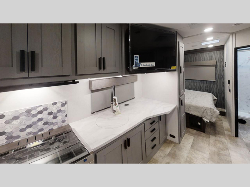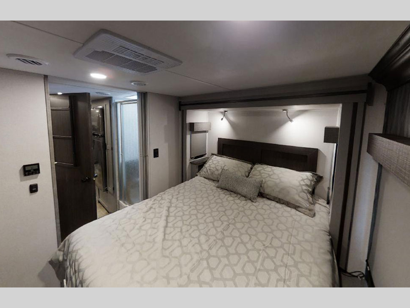 The clean, contemporary interiors will have you feeling right at home with features like comfortable seating and dining, convenient storage space, and a convection microwave. The backup and side view camera system will make it easy to maneuver the road, and the 10" in-dash touch screen Apple Carplay/Android Auto radio will let you enjoy some tunes as you travel.
