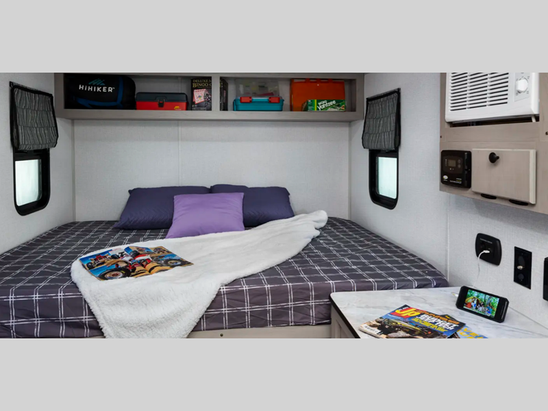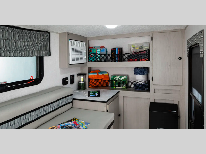 You'll enjoy the ROK Camping Made Easy Package with an outside shower, exterior LED lighting, and 7-way hooks. There are also tinted windows, a 12V power fan, plus 12V outlets and a USB charging port to keep your electronics charged. Each model also includes an ROK Kitchen Package that will allow you to cook and store meals each day!