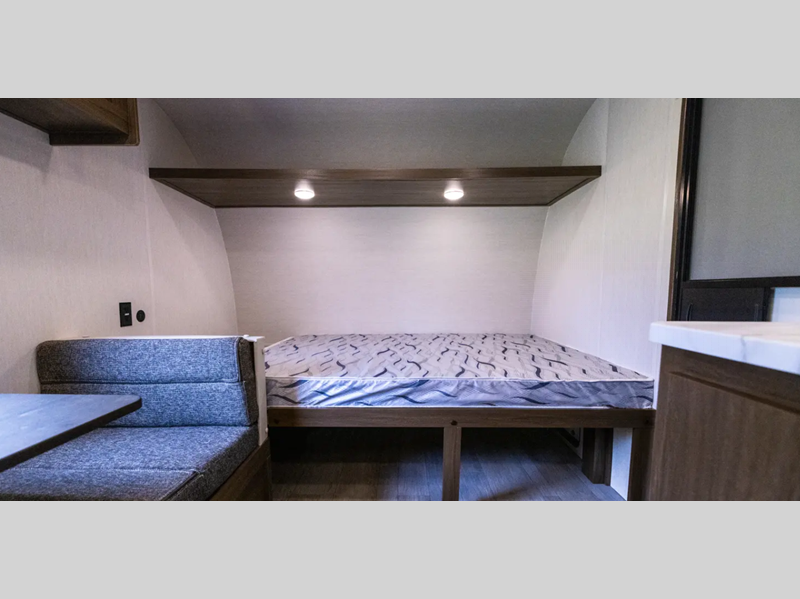 Sleeps 5 Length 20 ft 2 in Ext Width 8 ft Ext Height 10 ft 4 in Hitch Weight 505 lbs GVWR 4905 lbs Dry Weight 3694 lbs Cargo Capacity 1211 lbs Fresh Water Capacity 42 gals Grey Water Capacity 34 gals Black Water Capacity 34 gals Tire Size 225/75R15 Number Of Bunks 2 Available Beds Queen Refrigerator Type 12V Cooktop Burners 2 Number of Awnings 1 LP Tank Capacity 20 lbs Water Heater Type Tankless Awning Info 10' Power w/Integrated LED Lighting Axle Count 1 Number of LP Tanks 1 Shower Type Tub/Shower Combo Electrical Service 30 amp Similar Floorplans