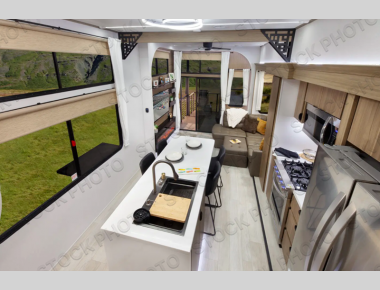 Each destination trailer is built with a durable heated and enclosed Accessibelly, along with slide out awning toppers and a 7' slide out height in the living room so you can relax in comfort. There are JBL interior/exterior speakers, 4K awning blade lighting, and an on-demand tankless water heater to name a few more convenient features.