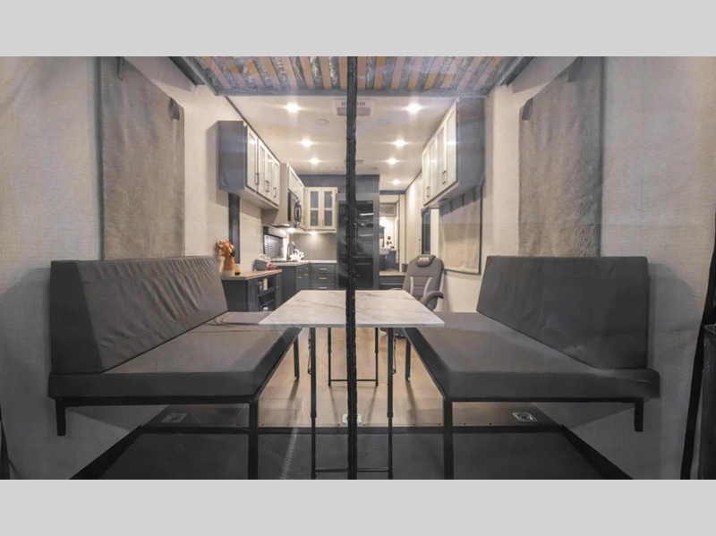 There is a rear beaver tail frame, a docking station, and a magnetic screen wall so you can let the fresh air in without letting the bugs in. You will feel right at home with decorative kitchen backsplash and LED lights, and there is a tankless water heater to provide endless hot showers after trail riding. The Alumifoil insulated enclosed underbelly will help extend your camping season, and the patio railing kit will let you enjoy more time outdoors once the toys are unloaded.