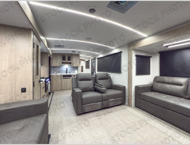 All models feature gel coated fiberglass exterior, one-piece roof membrane with 12-year warranty and easy access low point drain valves. The interior offers large panoramic windows, oversized underbed storage and residential countertops. The Imagine has a gross vehicle weight rating up to 8,496 pounds and a length up to 36-feet and 11-inches, depending on the model.