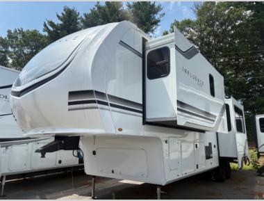 Any Grand Design Influence fifth wheel features five-sided aluminum cage construction with a walk-on roof and a fully enclosed underbelly with heated tanks and storage for all weather camping. For peace of mind, the MORryde CRE3000 Suspension system will provide safe and smooth towing, and the 101" widebody construction offers all the room you need and that is before multiple slides are fully engaged. You will appreciate the Keyed-Alike locks, slam-latch baggage doors with magnetic door catches, exterior security light, and SolidStep entry steps. On the inside, Congoleum flooring, premium roller shades for privacy, a hallway handrail for safety, and nightstands with USB ports to keep all of your electronics fully charged. You will also love the On Demand tankless water heater when showering, plus the added heat and ambiance from an electric fireplace, and so much more!