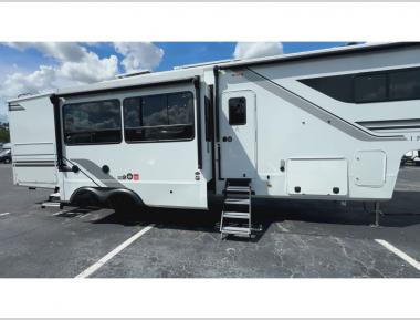 Any Grand Design Influence fifth wheel features five-sided aluminum cage construction with a walk-on roof and a fully enclosed underbelly with heated tanks and storage for all weather camping. For peace of mind, the MORryde CRE3000 Suspension system will provide safe and smooth towing, and the 101" widebody construction offers all the room you need and that is before multiple slides are fully engaged. You will appreciate the Keyed-Alike locks, slam-latch baggage doors with magnetic door catches, exterior security light, and SolidStep entry steps. On the inside, Congoleum flooring, premium roller shades for privacy, a hallway handrail for safety, and nightstands with USB ports to keep all of your electronics fully charged. You will also love the On Demand tankless water heater when showering, plus the added heat and ambiance from an electric fireplace, and so much more!