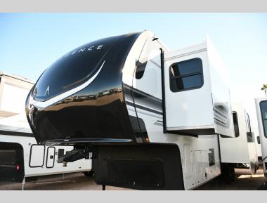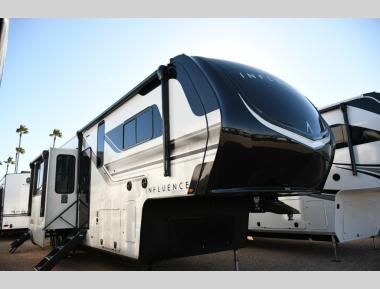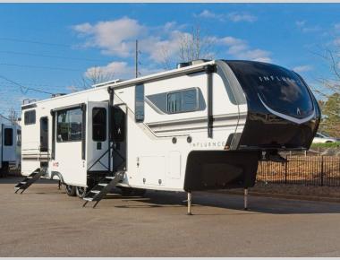 Any Grand Design Influence fifth wheel features five-sided aluminum cage construction with a walk-on roof and a fully enclosed underbelly with heated tanks and storage for all weather camping. For peace of mind, the MORryde CRE3000 Suspension system will provide safe and smooth towing, and the 101" widebody construction offers all the room you need and that is before multiple slides are fully engaged. You will appreciate the Keyed-Alike locks, slam-latch baggage doors with magnetic door catches, exterior security light, and SolidStep entry steps. On the inside, Congoleum flooring, premium roller shades for privacy, a hallway handrail for safety, and nightstands with USB ports to keep all of your electronics fully charged. You will also love the on demand tankless water heater when showering, plus the added heat and ambiance from an electric fireplace, and so much more!