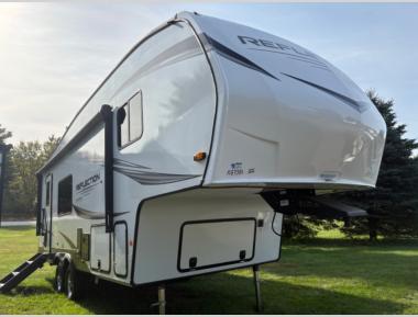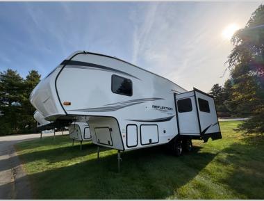 Each Reflection 100 Series fifth wheel by Grand Design is affordable and packed with luxury for unforgettable camping memories! The MorRyde CRE3000 suspension system and Goodyear Endurance tires will provide smooth towing from home to campground. And the solar package with a 180W solar panel, 60 Amp charge controller and 12V refrigerator will allow you to camp for longer periods of time and in more locations! A heated and enclosed underbelly with circulating heat is included in the Arctic 4-Seasons Protection Package, along with a double insulated roof and front cap, and thermofoil insulation under the holding tanks so you can camp all year long if you choose. You will appreciate having an on-demand water heater for hot showers after exploring, and the universal all-in-one docking station will let you monitor your RVs tanks levels and functions with ease. These models also include many luxurious interior features, such as premium Congoleum flooring, pleated shades, residential cabinetry, and matte black fixtures and hardware. Don't let the Reflection 100 Series fifth wheels pass you by!