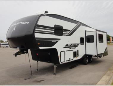 Each Reflection 100 Series fifth wheel by Grand Design is affordable and packed with luxury for unforgettable camping memories! The MorRyde CRE3000 suspension system and Goodyear Endurance tires will provide smooth towing from home to campground. And the solar package with a 180W solar panel, 60 Amp charge controller and 12V refrigerator will allow you to camp for longer periods of time and in more locations! A heated and enclosed underbelly with circulating heat is included in the Arctic 4-Seasons Protection Package, along with a double insulated roof and front cap, and thermofoil insulation under the holding tanks so you can camp all year long if you choose. You will appreciate having an on-demand water heater for hot showers after exploring, and the universal all-in-one docking station will let you monitor your RVs tanks levels and functions with ease. These models also include many luxurious interior features, such as premium Congoleum flooring, pleated shades, residential cabinetry, and matte black fixtures and hardware. Don't let the Reflection 100 Series fifth wheels pass you by!