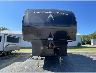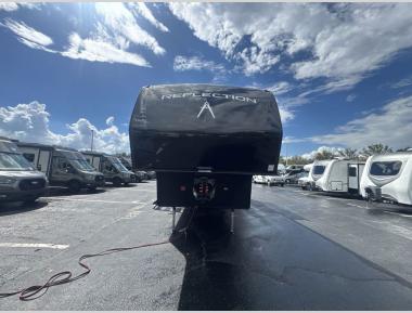 With any Reflection 150 Series fifth wheel by Grand Design, there is more available payload capacity and a broader range of half-ton trucks capable of towing this fifth wheel, and no slider hitch is needed thanks to the 90-degree turning radius which makes them short bed friendly and easier to tow. The mandatory Ultimate Power package provides a "One-Touch" automatic leveling system and a detachable power cord with LED light for easy setup, plus motion sensor pass-through lighting and entry lighting, and the Tire Linc TPMS will help you stay safe on the road. The interior offers residential cabinetry and premium Congoleum flooring, to the booth dinette and residential-style window treatment. Make your refined decision today!
