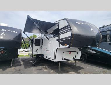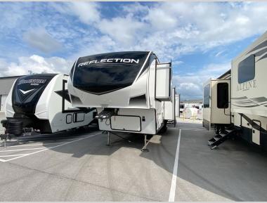 With any Reflection fifth wheel by Grand Design, you will have a solar panel for off-grid camping and a 60 amp charge controller and inverter prep, a Universal All-In-One docking station, unobstructed pass-through storage, and Goodyear Endurance tires. Each is constructed of gel coat exterior sidewalls, residential 5" truss rafters, walk-on roof decking, a fiberglass and radiant foil roof and front cap insulation plus laminated aluminum framed side walls, roof and end walls in slide rooms. Head inside to enjoy residential hardwood cabinet doors, premium Congoleum flooring, a spacious shower with a glass door, and many more comforts!