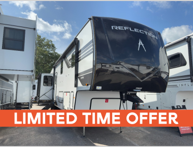 With any Reflection fifth wheel by Grand Design, you will have a solar panel for off-grid camping and a 60 amp charge controller and inverter prep, a Universal All-In-One docking station, unobstructed pass-through storage, and Goodyear Endurance tires. Each is constructed of gel coat exterior sidewalls, residential 5" truss rafters, walk-on roof decking, a fiberglass and radiant foil roof and front cap insulation plus laminated aluminum framed side walls, roof and end walls in slide rooms. Head inside to enjoy residential hardwood cabinet doors, premium Congoleum flooring, a spacious shower with a glass door, and many more comforts!
