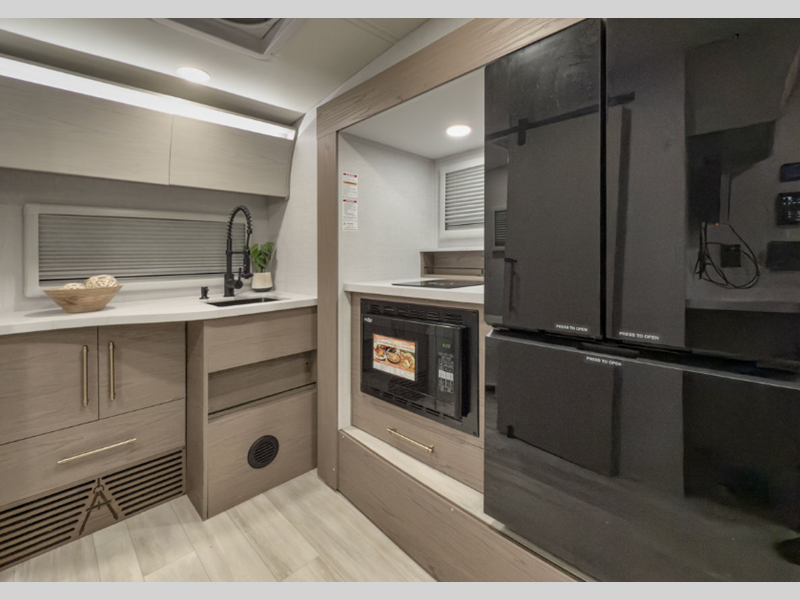 Sleeps 4 Length 20 ft 2 in Ext Width 8 ft 5 in Ext Height 10 ft Int Height 6 ft 6 in Hitch Weight 589 lbs GVWR 5400 lbs Dry Weight 4436 lbs Fresh Water Capacity 39 gals Grey Water Capacity 30 gals Black Water Capacity 30 gals Tire Size ST225/75R15LRE Furnace BTU 20000 btu Available Beds Queen Refrigerator Type 12V French Door Refrigerator Size 8 cu ft Shower Size 24" x 32" Number of Awnings 1 LP Tank Capacity 40 lbs. Water Heater Type Tankless AC BTU 13500 btu TV Info 24" LED TV Awning Info 11' Power Armless Cassette w/Integrated LED Light Axle Count 1 Number of LP Tanks 2 Shower Type Standard Electrical Service 50 amp Similar Floorplans
