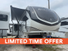 Sleeps 4 Slides 3 Length 37 ft 10 in Ext Width 8 ft 5 in Ext Height 13 ft 5 in Int Height 8 ft 1 in Exterior Color Standard Graphics or Aurora, Midnight, Pearl Full-Body Paint Options Hitch Weight 2700 lbs GVWR 19000 lbs Dry Weight 13800 lbs Fresh Water Capacity 83 gals Grey Water Capacity 106 gals Black Water Capacity 53 gals Tire Size ST215/75R 17.5 LRH Furnace BTU 35000 btu Available Beds Queen Refrigerator Type Stainless Steel Refrigerator Size 20 cu ft Cooktop Burners 3 Shower Size 48" x 30" Number of Awnings 2 Axle Weight 8000 lbs LP Tank Capacity 30 lbs. Water Heater Type Tankless On Demand AC BTU 15000 btu TV Info LR LED Telescoping Smart TV Awning Info 11' & 19' Power w/Integrated LED Lighting Axle Count 2 Washer/Dryer Available Yes Number of LP Tanks 2 Shower Type Shower w/Seat Electrical Service 50 amp Similar Floorplans