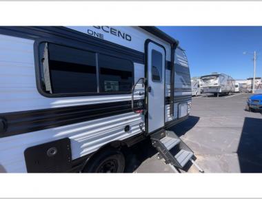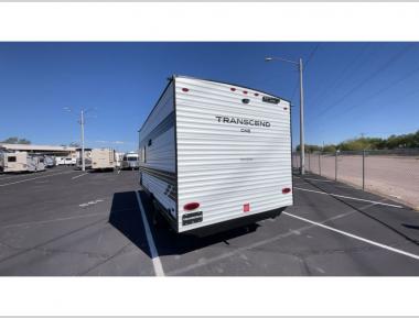 With any Transcend One travel trailer by Grand Design, you will enjoy lightweight towing thanks to their single-axle. There are many interior comforts to make camping easier than ever, such as recessed lighting, residential countertops, and a 6' 6" interior height. Each model is constructed with a heated and enclosed underbelly with suspended tanks, a moisture barrier floor enclosure, and Thermofoil over the roof and front cap for added protection. And a JBL sound system will let you listen to tunes as you visit under the power awning with a Fusion light!