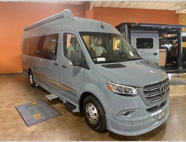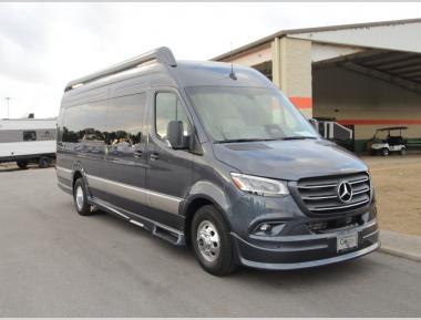 Sleeps 2 Length 24 ft 2 in Ext Width 6 ft 8 in Ext Height 9 ft 11 in Int Height 6 ft 1 in Exterior Color Grey White, Iridium Silver, Tenorite Grey Hitch Weight 5000 lbs Fresh Water Capacity 26 gals Grey Water Capacity 27 gals Black Water Capacity 13 gals Fuel Type Diesel Engine 4-Cylinder High Output Chassis Mercedes-Benz Sprinter 3500XD Extended Horsepower 211 hp Wheelbase 170 in Torque 332 ft-lb Refrigerator Type Refrigerator/Freezer Combo Convection Cooking Yes Cooktop Burners 2 Number of Awnings 1 Water Heater Type Tankless AC BTU 15000 btu TV Info Coach 24" LED TV Awning Info Power w/ LED Lighting Shower Type Wet/Bath Shower Electrical Service 30 amp