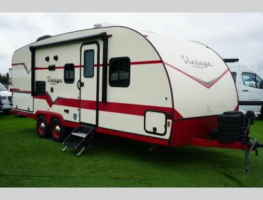 All models feature a lightweight chassis, black radius tinted windows and a one-piece fiberglass roof, and front and rear walls. The interior offers high-performance vinyl flooring, a booth dinette and a break-away switch. The Vintage Cruiser has a dry weight up to 4,486 pounds and a length up to 26-feet and 1-inches, depending on the model.
