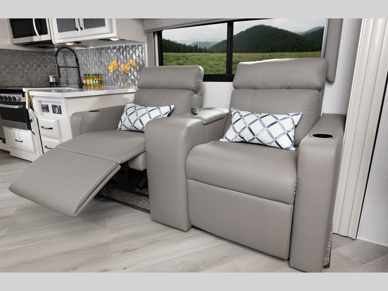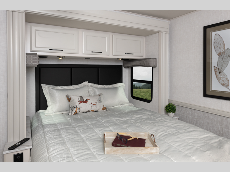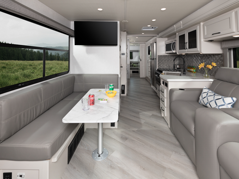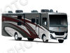 Sleeps 5 Slides 2 Length 35 ft 9 in Ext Width 8 ft 4 in Ext Height 12 ft 10 in Int Height 6 ft 10 in Interior Color Cumberland, Sentinel, Solstice Exterior Color Magnum, Matterhorn, Maverick, Motion, Obsidian Hitch Weight 8000 lbs GVWR 26000 lbs Fresh Water Capacity 100 gals Grey Water Capacity 50 gals Black Water Capacity 50 gals Generator 5.5W Fuel Type Gasoline Engine 7.3L V8 Chassis Ford F-53 Horsepower 335 hp Fuel Capacity 80 gals Wheelbase 242 in Number Of Bunks 1 Available Beds RV Queen Torque 468 ft-lb Refrigerator Type Residential Convection Cooking Yes Cooktop Burners 3 Shower Size 34" x 22" Axle Weight Front 9000 lbs Axle Weight Rear 17500 lbs Basement Storage 134 cu. ft. TV Info LR LED TV, BR LED TV, Ext. LED TV Awning Info 20' Washer/Dryer Available Yes Gross Combined Weight 30000 lbs Shower Type Standard Electrical Service 50 amp Similar Floorplans