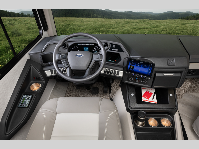 DriveTech’s ergonomically designed steering wheel and easy-to-reach, column-mounted controls turn piloting your RV into a driver-friendly automotive experience. And as the RV industry’s first LED instrument Cluster, OptiView™ has bright graphics, colors and menus, Bluetooth® connectivity and on-demand operation. Together, they both give you convenience and control, right at your fingertips.
